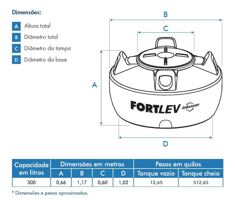 Caixa Dágua C/ Rosca Fortlev 500 Litros Antibacteriano Beje Bege